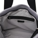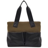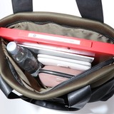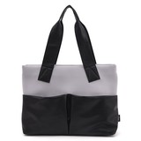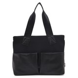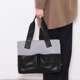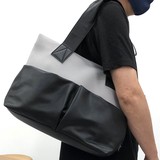 ユニセックスで使用できる、フェイクレザーとのコンビのダイバー風生地コンビ2WAYトートバッグ。