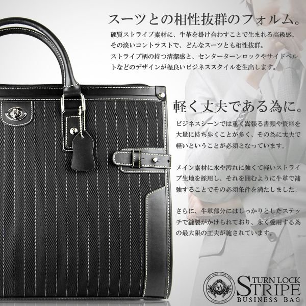バッグ正面にターンロックを配置しビジネスシーンをお洒落に決めるアクセントに。