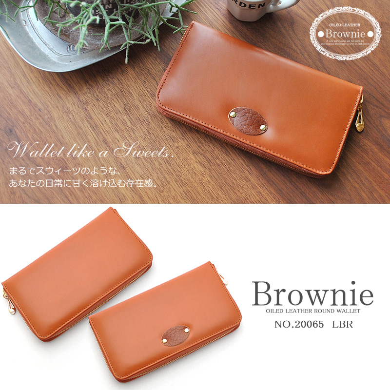 ブラウニーオイルドレザー(牛革)ラウンドファスナーレディース長財布