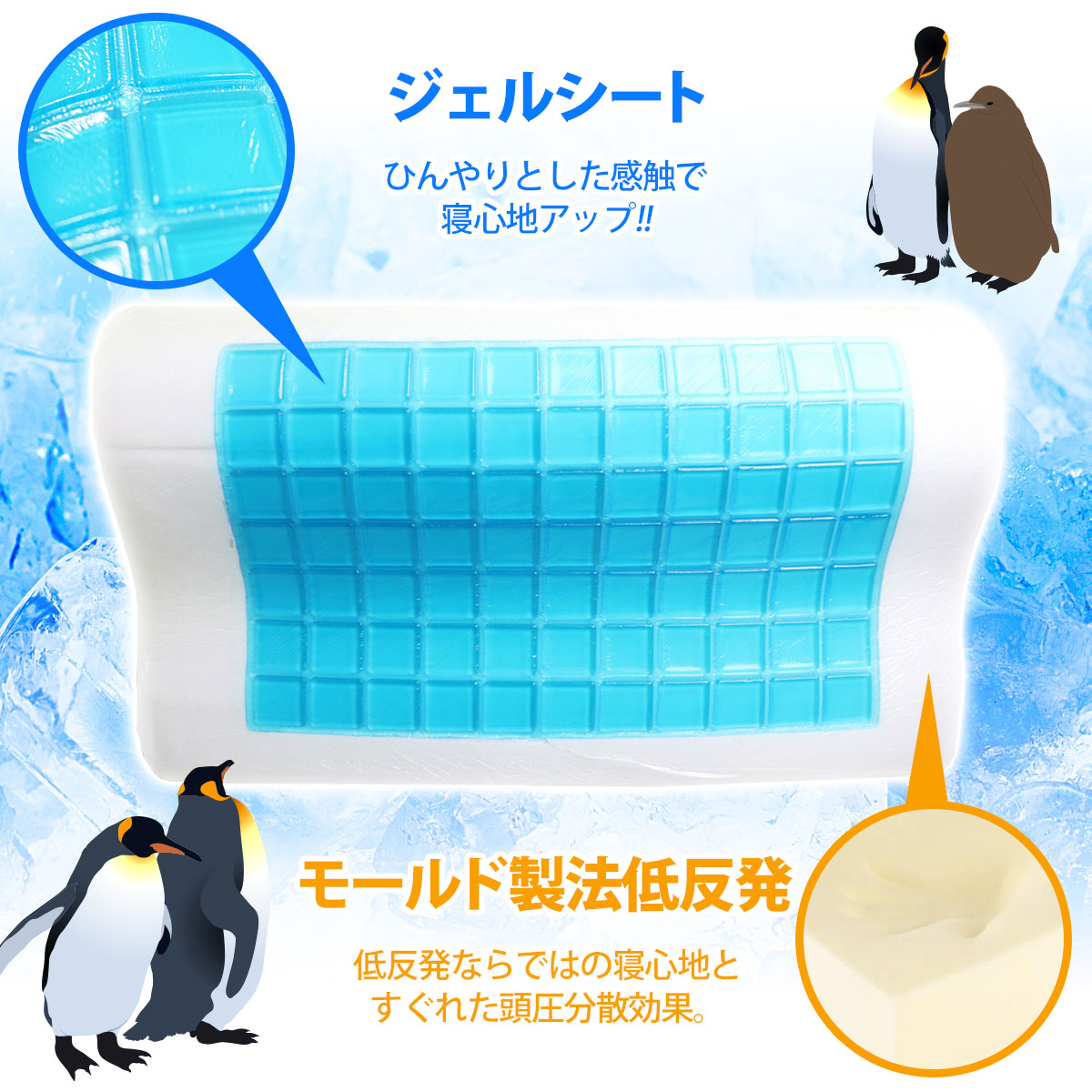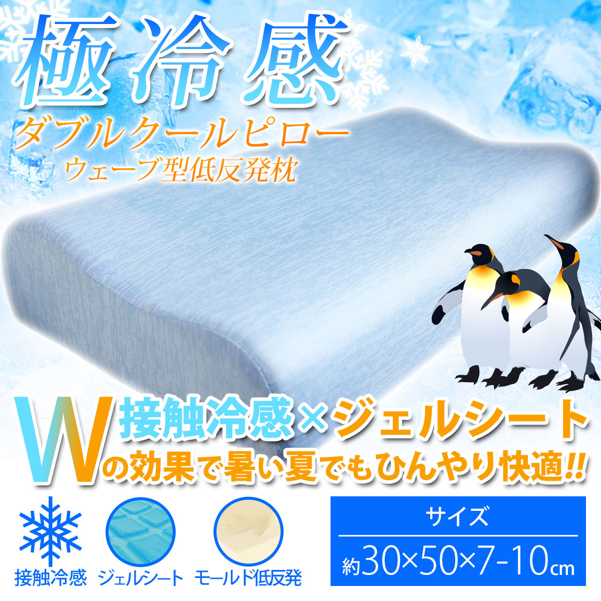 ●Wクールで効果で、枕が温まってもすぐに熱を排出し、長時間冷たさをキープしてくれるので快適に眠れます。
