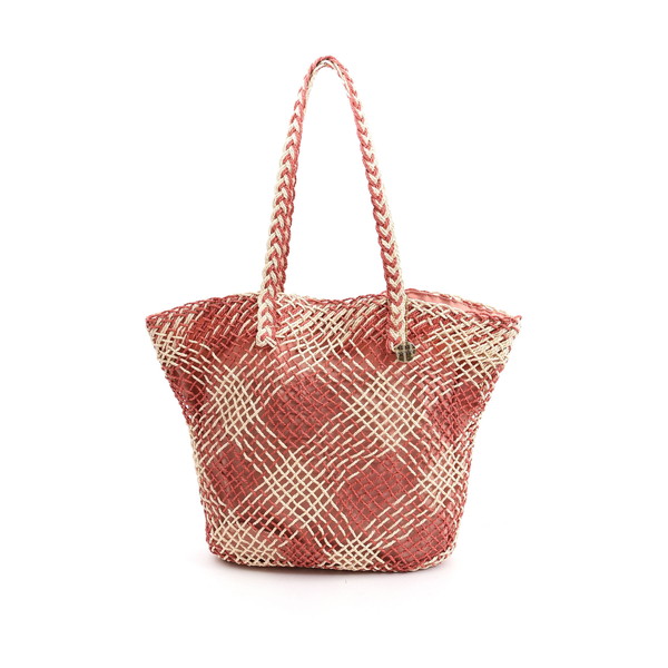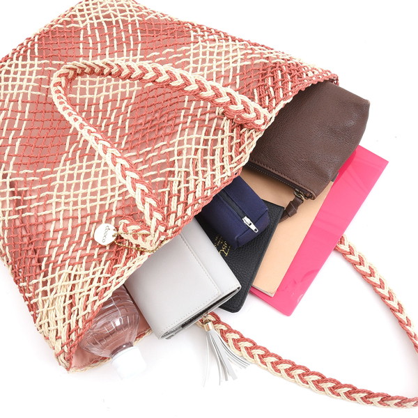 チェック柄の編みがかわいいかごバッグは、A4サイズもすっぽり入る大容量で使い勝手も◎