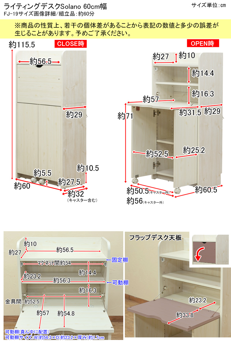 幅600×奥行320(キャスター含む)×高さ1155mm(梱包サイズ:幅800×奥行385×高さ240mm)